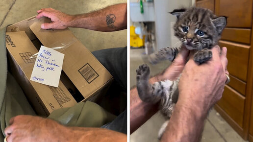 Мужчина открывает коробку, где должен был быть котёнок, но он видит дикое животное!