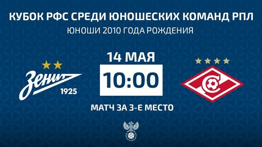 Зенит - Спартак | Матч за 3 место | Кубок РФС среди юношеских команд клубов РПЛ | РФС ТВ