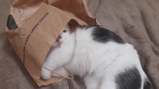 Буся сидит в пакете