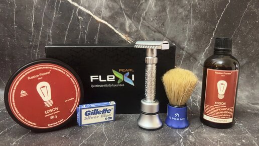 Серебряная жемчужина: Pearl Flexi, Spokar mini, мыло и лосьон Edison, Gillette silver blue & Sputnik