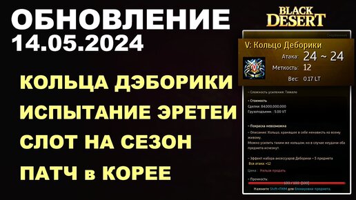 🔔 КОЛЬЦО ДЕБОРИКИ ♦ ИСПЫТАНИЕ ЭРЕТЕИ ♦ +КОРЕЯ и CONSOLE ♦ Обнова в БДО 14.05.24 (BDO-Black Desert)