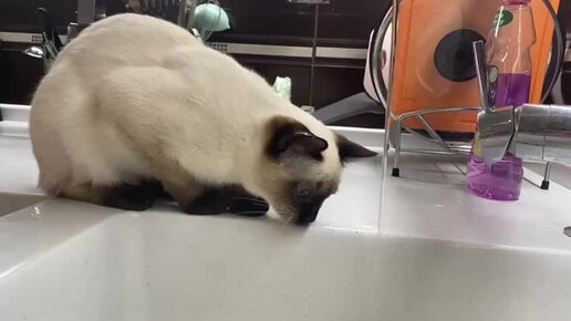 Наша смешная и красивая кошка Оливка изучает воду