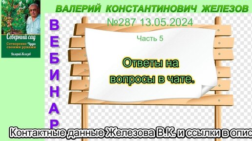 Железов Валерий. Вебинар 287. ч. 5. Ответы на вопросы в чате.