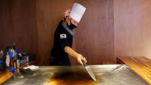 Мастер теппаньяки с лобстером и говяжьим стейком - уличная еда Кореи, которая подарит вам настоящее удовольствие от каждого укуса!