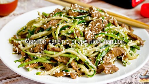 Добавим азиатских ноток. Мясной салат с огуречной "лапшой"
