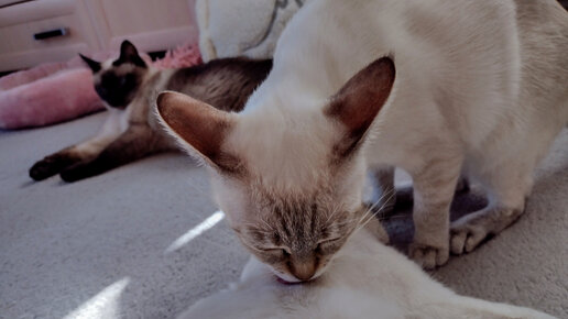 Прилив нежности у котиков выливается в облизывание младших по возрасту