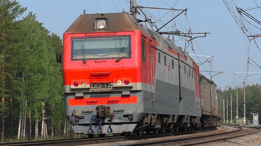 2ЭС6-173 "Синара" с грузовым поездом следует через о.п. Строитель