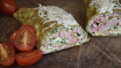 Готовим яичный рулет на завтрак! Вариант приготовления омлета с начинкой из сыра и сосисок