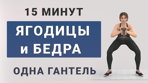 15 мин БЕДРА + ЯГОДИЦЫ - одна гантель🍑 Силовая тренировка для нижней части (11 упражнений)