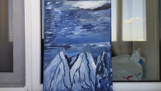 Энергокартина "Морозные горы". Акрил, 40×30 см. Покрыта лаком, торцы окрашены. Создана в один этап. Продается. Писать в комментарии.