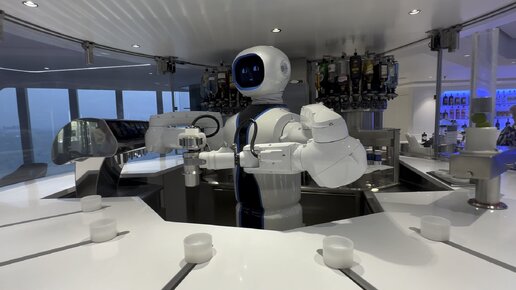 РОБОТ ГОТОВИТ НАМ КОКТЕЙЛЬ НА ЛАЙНЕРЕ MSC VIRTUOZA НА КРУИЗЕ ПО ПЕРСИДСКОМУ ЗАЛИВУ.