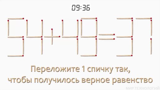 Задача 76. Переложите 1 спичку так, чтобы получилось верное равенство (54+49=37)