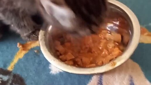 Белка первый раз пробует мясо