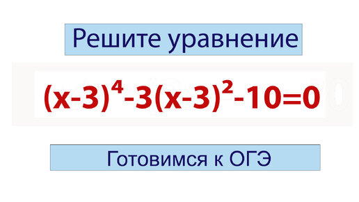 Решите уравнение из второй части ОГЭ (номер 20). (x-3)^4 - 3(x-3)^2 - 10 = 0