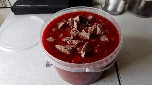 Борщ говяжий из запечённой свеклы с молодой капустой.