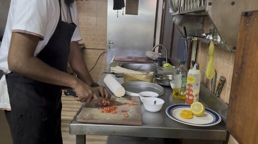 Как готовят фруктово-овощной салат миллионера из пальмы , мастер-класс от поваров на Маврикии