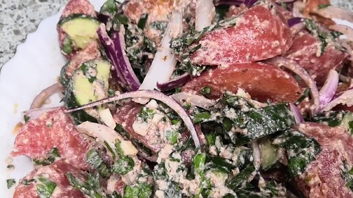 Летний салат с ореховой заправкой