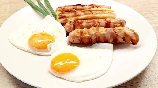 Сосиски с беконом и яйцами! Отличный завтрак или перекус! #сосиски #сосискивбеконе