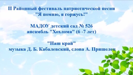 "Наш край" музыка Д. Б. Кабалевского, слова А. Пришельца