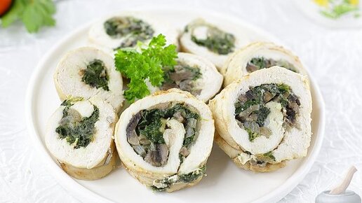 Аппетитные выкрутасы.) Куриные рулеты с грибами и шпинатом