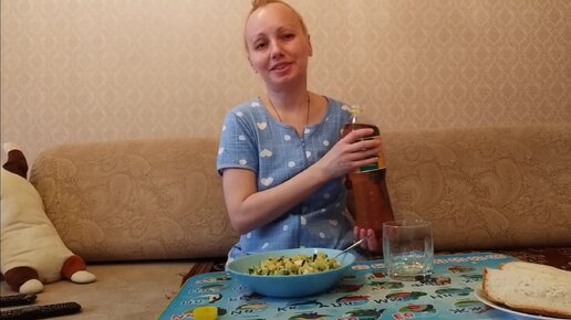 Вкусный вечерний мукбанг 😋 Салатик "Обжорка" на ужин! Поедим и поболтаем! Самый верный друг, мой собачий ребёнок - Соня всегда рядышком ❤️