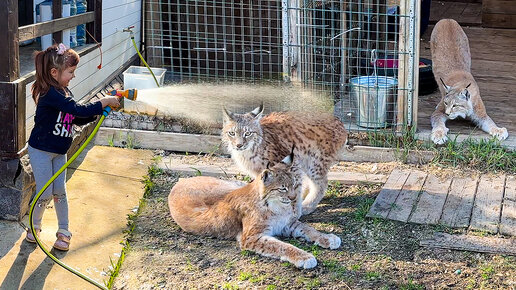РЕАКЦИЯ ГИГАНТСКОГО МИНИ ПИГА И РЫСИ НА ДУШ / Бобкэт Руфус полюбил кресло