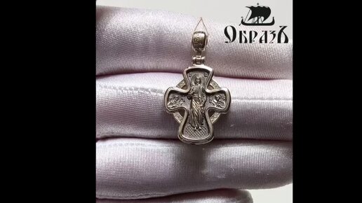 Крест «Господь Вседержитель. Икона Божией Матери «Неупиваемая Чаша», золото 585 проба белое (арт. 201.060-3)