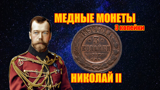 Медные царские монеты Николая II, старинные 3 копейки Российской Империи