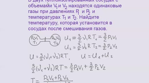 Задача на энергию смеси газов, Физика ЕГЭ, Олимпиады, МКТ, Термодинамика