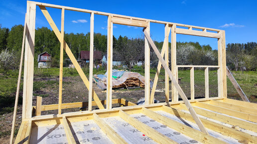 Первая "пошла": размечаю, собираю, поднимаю каркасные стены дачного дома 4*6
