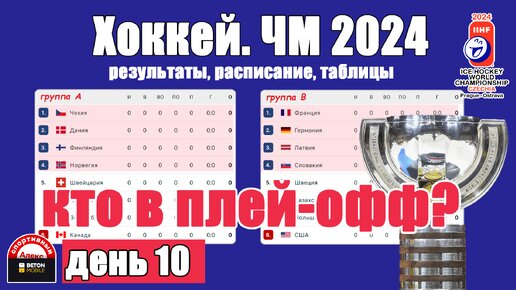 ЧМ по хоккею 2024. 10 день. Кто в 1/4? Расписание. Результаты. Таблица.