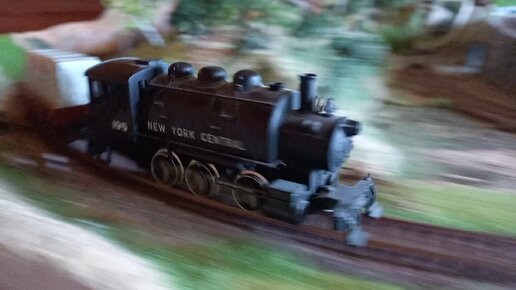 Паровоз NEW YORK CENTRAL с вагоном от FLESCHMANN чистит рельсы.