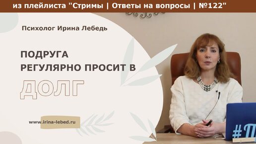 Подруга регулярно просит в долг. Как быть? - из плейлиста Стримы | Ответы на вопросы № 122 - психолог Ирина Лебедь