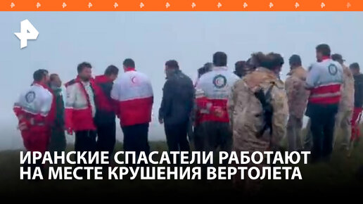 Иранские спасатели работают на месте крушения вертолета президента Раиси