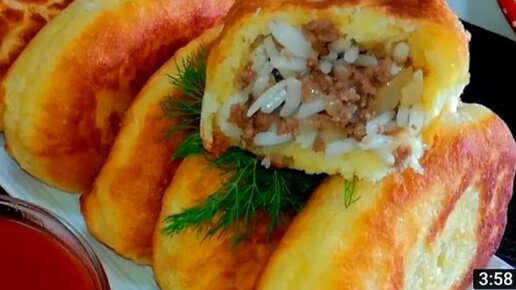 Приготовила вкусные пирожки как пух. Пирожки с рисом и мясом