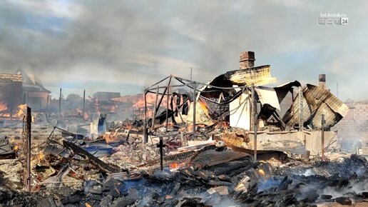 Крупный пожар уничтожил постройки и жилые дома в Центральном районе Братска