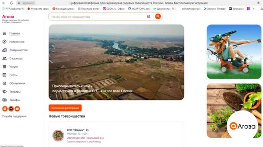 AGOVA Цифровая платформа для садоводов и садовых товариществ России