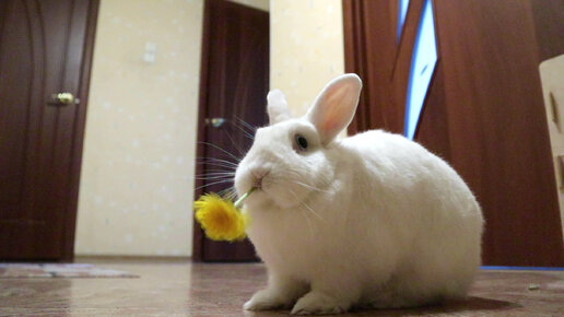 Кролик Моти ест одуванчик 🌼