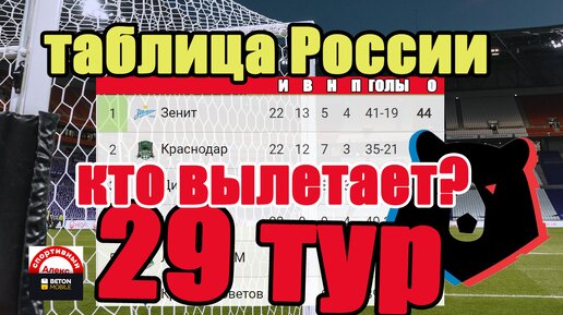 Футбол. Чемпионат России. РПЛ. 29 тур. Кто вылетел, кто повысился? Результаты. Таблица. Расписание.