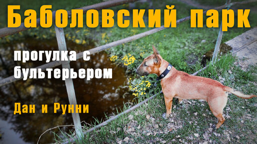 Мини бультерьер в Баболовском парке. Дан и Рунни на прогулке.