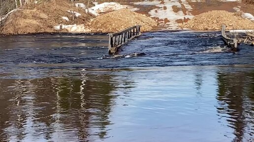 Весна пришла в конце мая. Вода ломает мост на таёжной речке.