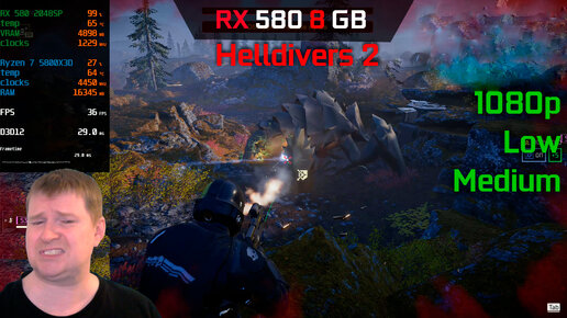 RX 580 [2048 SP] - Helldivers 2. Защита демократии без текстур.
