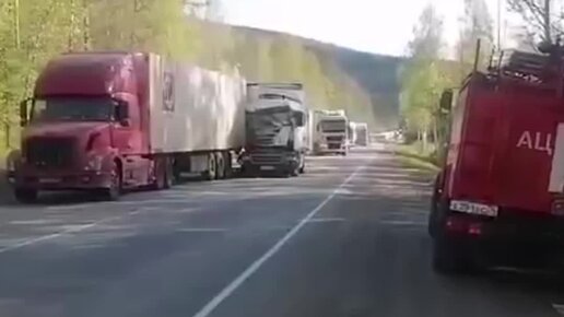 Один из шоферов не успел затормозить и протаранил большегруз!