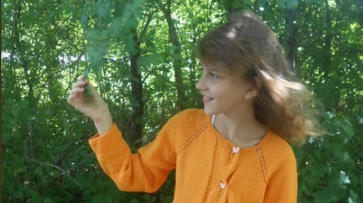 КОФТОЧКА НА ДЕВОЧКУ 9-10 ЛЕТ С АЖУРНЫМИ ЛИСТОЧКАМИ НА ПЛАНКЕ