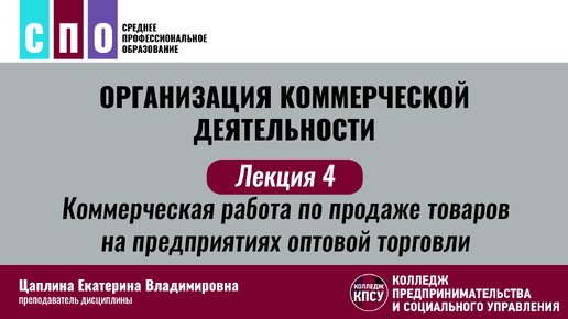Лекция 4. Коммерческая работа по продаже товаров на предприятиях оптовой торговли
