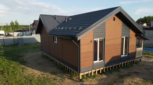 Отделка наружных фасадов одноэтажного каркасного дома 8,5х10,1 м в Раменском районе КП "Морозово"
