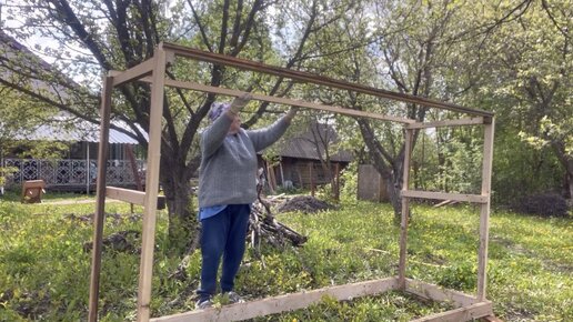 Закончила строительство домиков для огурчиков и помидорчиков. Осталось накрыть спанбондом.