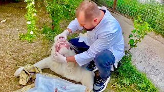 Белый тигр ПОВРЕДИЛ ГЛАЗ и Олег Зубков с доктором Василием помогают этой РЕДЧАЙШЕЙ КОШКЕ!