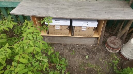 Ульи шмелей в кустах жимолости