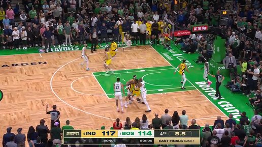 Джейлен Браун в эффектном падении спасает матч с «Индианой».